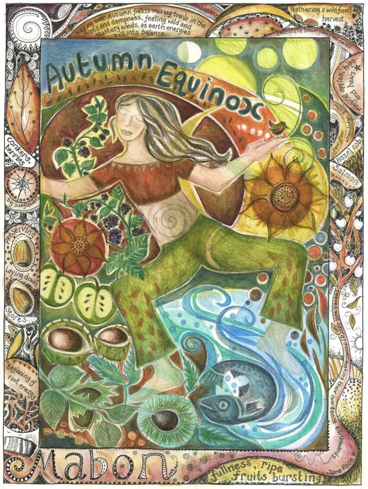Üstteki resim çok sevdiğim çizer Jaine Rose tasarımı bir sonbahar ekinoksu resmi. Yazılardan bir kısmında şöyle bir şeyler diyor:
